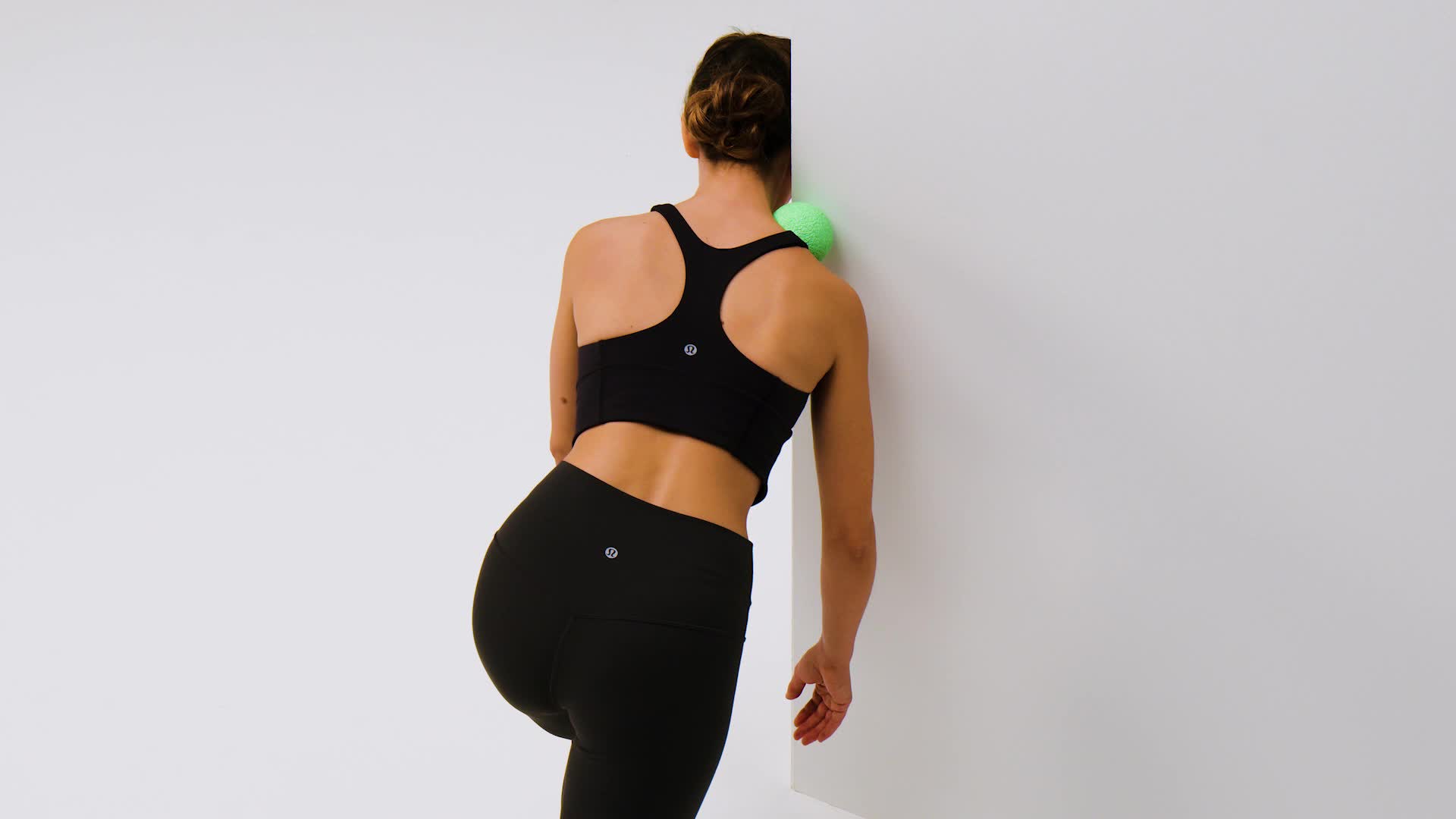 Starte in Bauchlage und platziere BALL 08 unter deiner Brust. Bewege zügig deinen Oberkörper hin- und her um die Brust zu massieren. Alternativ kannst du auch deinen Arm nach oben strecken und wieder ranziehen.