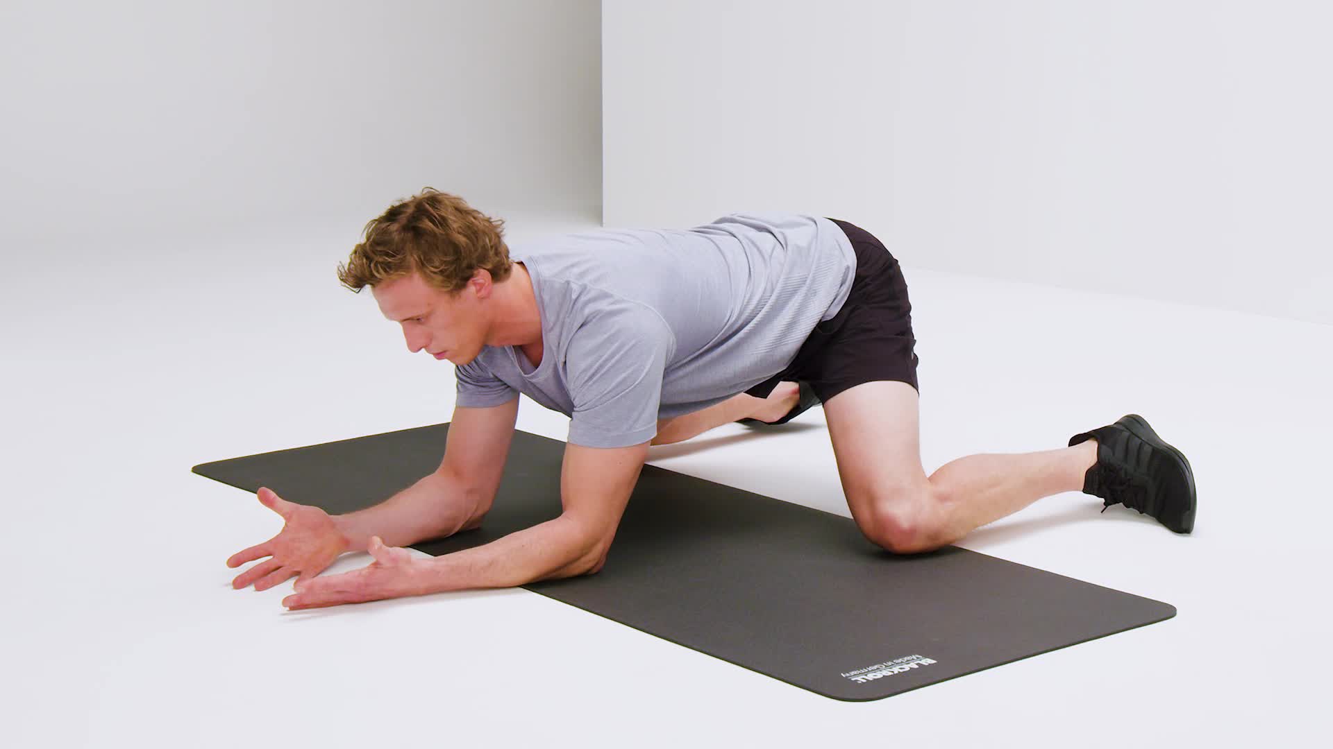 Démarre en position quadrupède. Écarte davantage tes genoux. Pousse les hanches en arrière. Maintiens cette position.