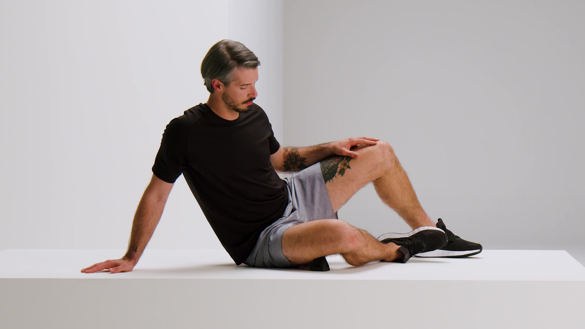 Platziere deinen Außenschenkel auf dem TRIGGER. Suche einen Schmerzpunkt. Verbleibe auf dem Punkt. Entspanne dein Bein. Konzentriere dich auf deine Atmung.