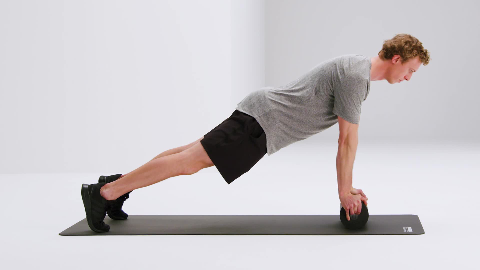 Starte in der Liegestützposition mit den Händen auf der BLACKROLL. Halte die Rumpfspannung ohne dein Becken abzusenken. Beuge deine Ellenbogen. Senke deinen Oberkörper nach unten. Drücke dich in die Ausgangsposition zurück.