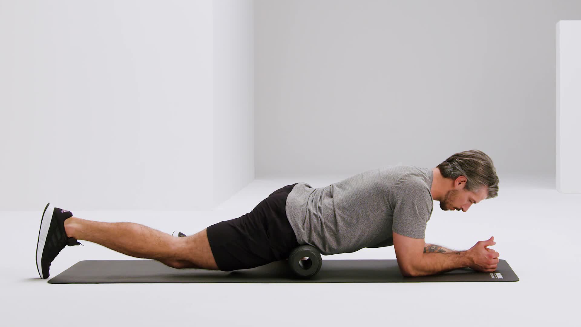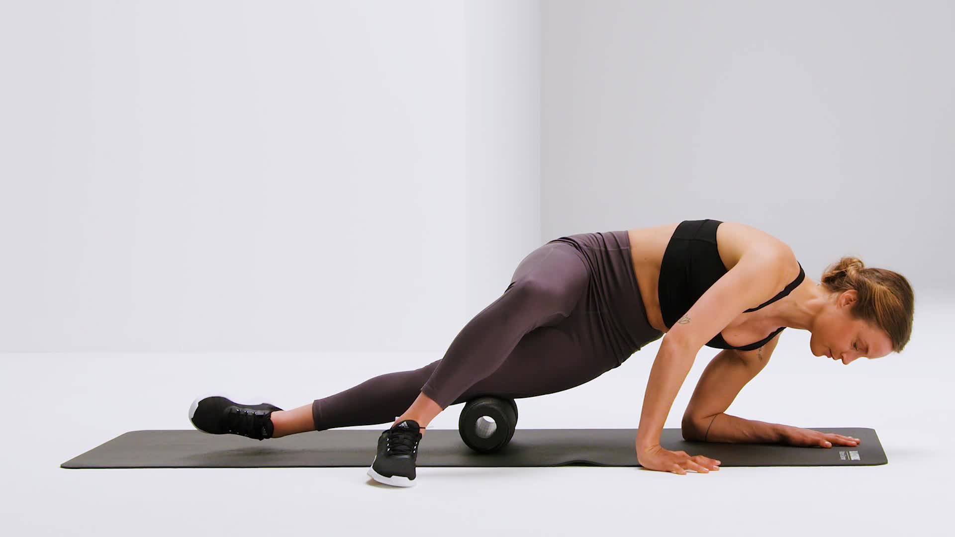 Start in plank position. Place the TWIN above the knee. Quickly roll out your thigh.