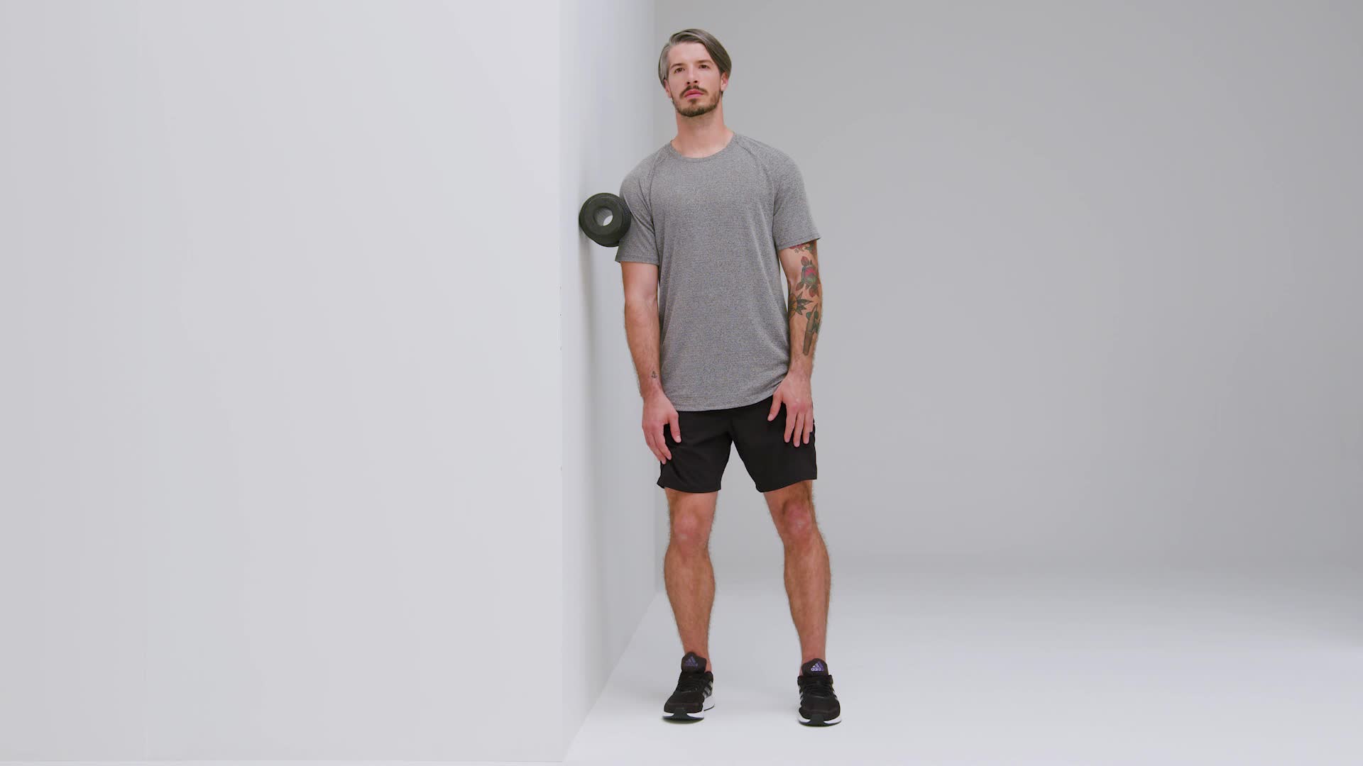 Position the TWIN against the wall in standing position. Lean against it with your upper arm. Slowly roll out your upper arm by bending and extending your knees.