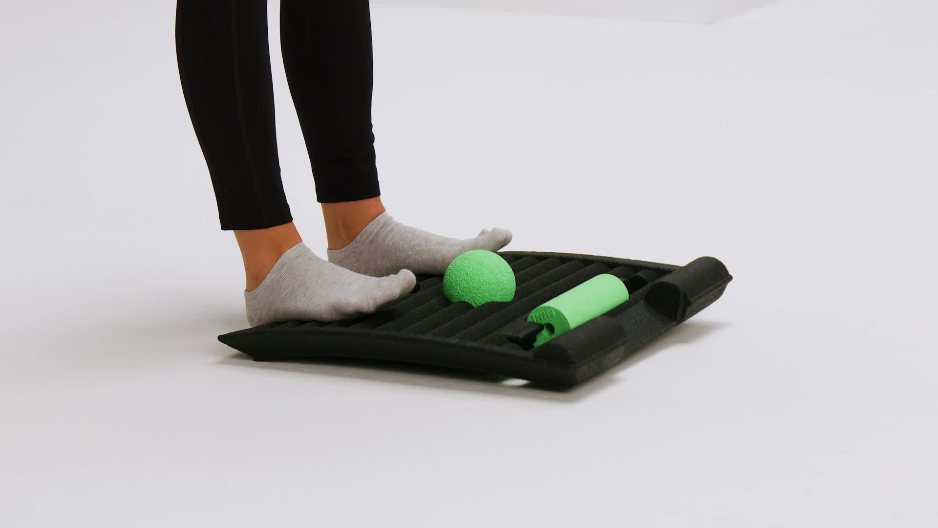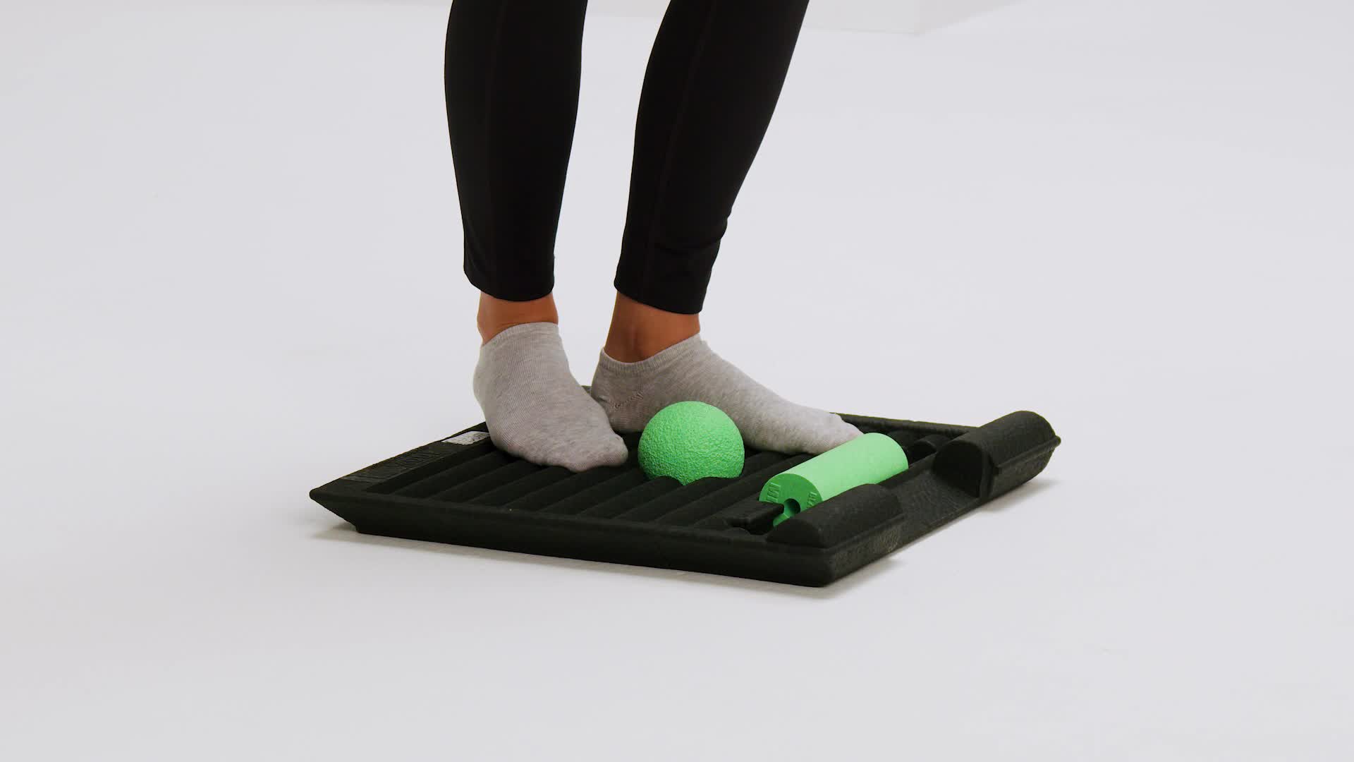Stand on the two large curves of the SMOOVE BOARD. The unstable surface activates your muscles. Your stance becomes more active.
