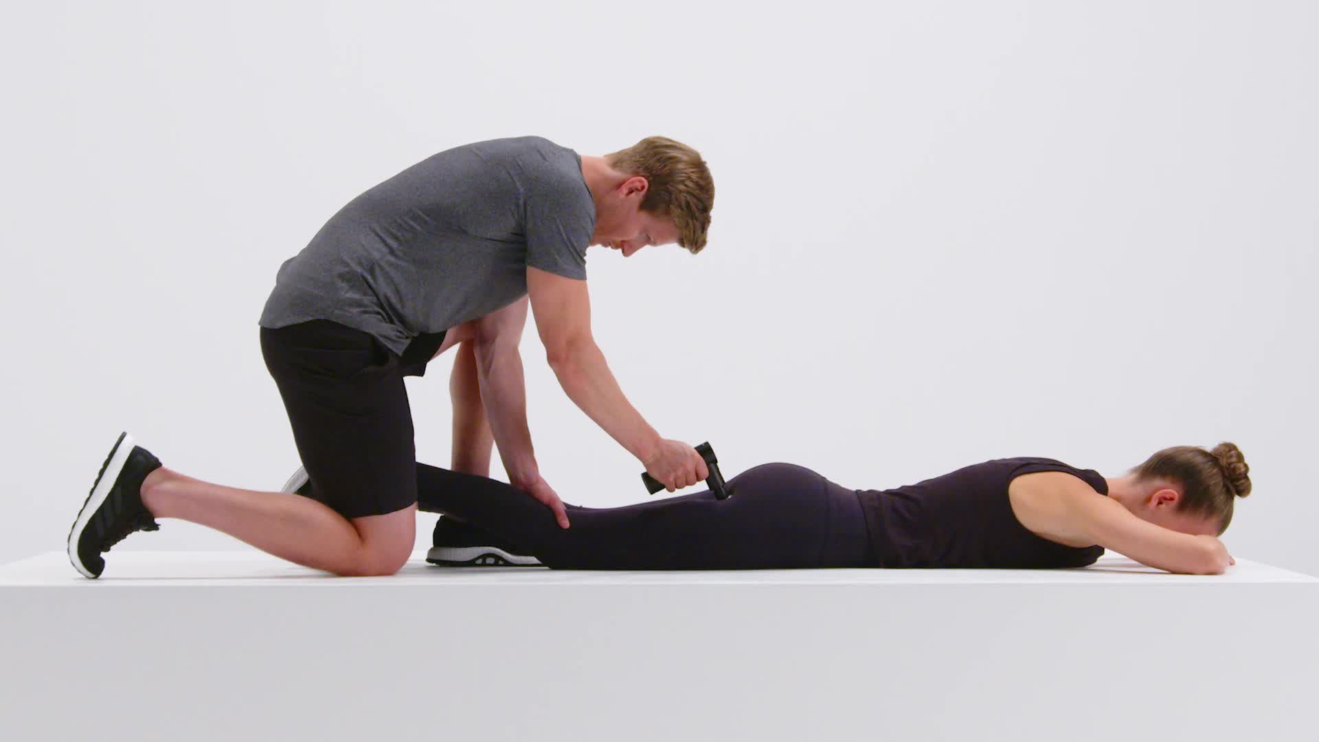 Tes jambes fournissent beaucoup d'efforts et pas seulement lorsque tu fais du sport. Avec le pistolet de massage, tu peux offrir à tes jambes un agréable massage vibrant, à chaque fois que tu souhaites te détendre ou te préparer à un effort. Selon le mode de vibration que tu choisis, ton objectif de massage varie également (niveau 1&2 pour la régénération, niveau 3&4 pour l'activation). Bien entendu, tu n'utilises pas le pistolet de massage sur tes jambes sur des structures osseuses comme les genoux ou les tibias. Commence tout de suite les exercices !