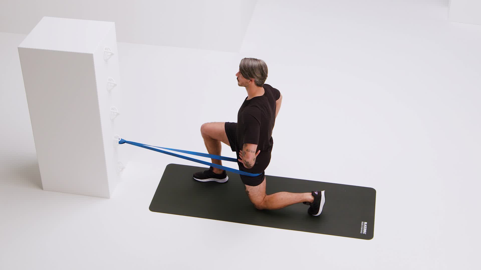 Mettez-vous à genoux de manière à ce que vos genoux soient sous vos hanches. Placez la SUPER BAND autour de vos cuisses depuis l’avant.