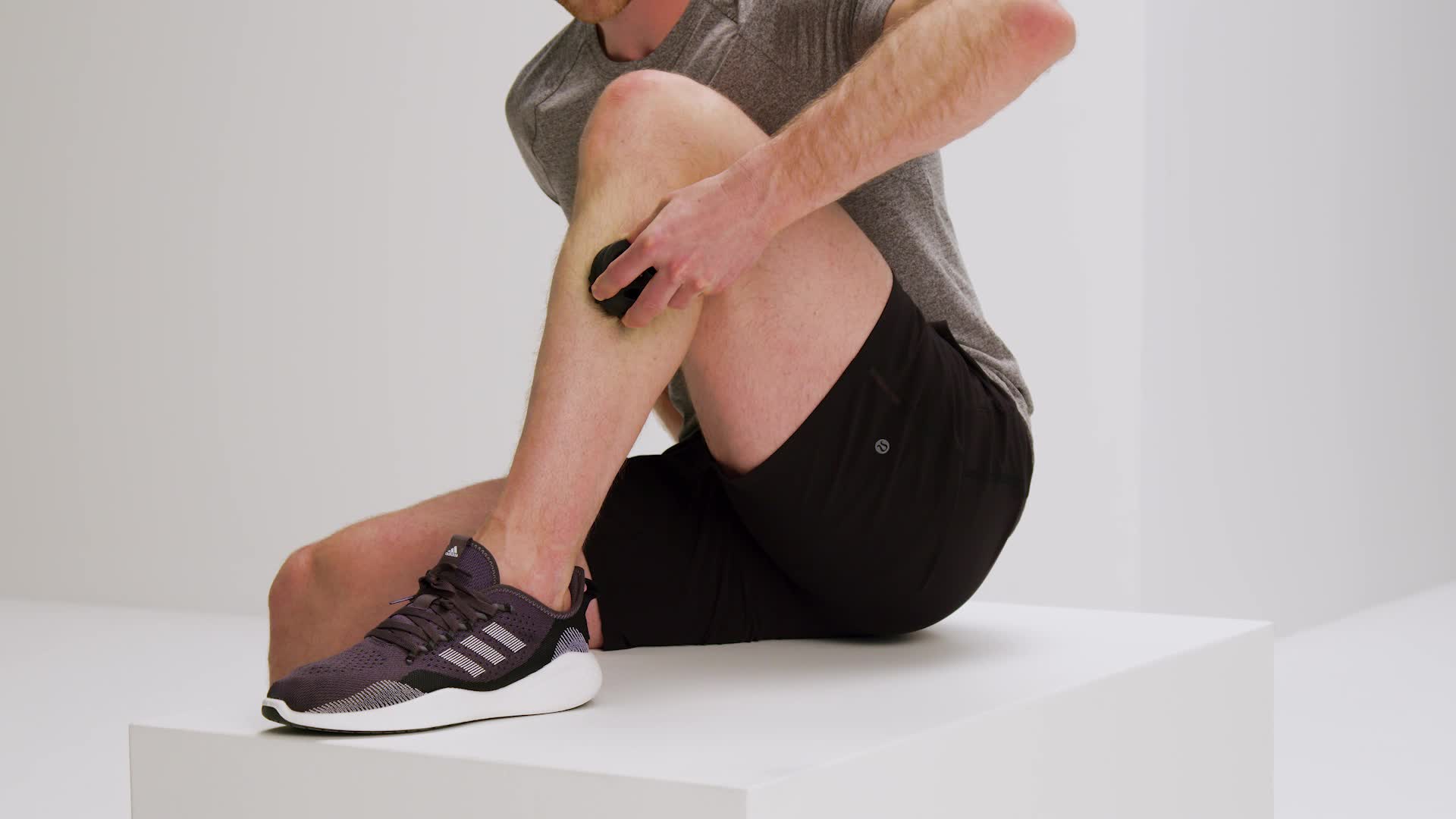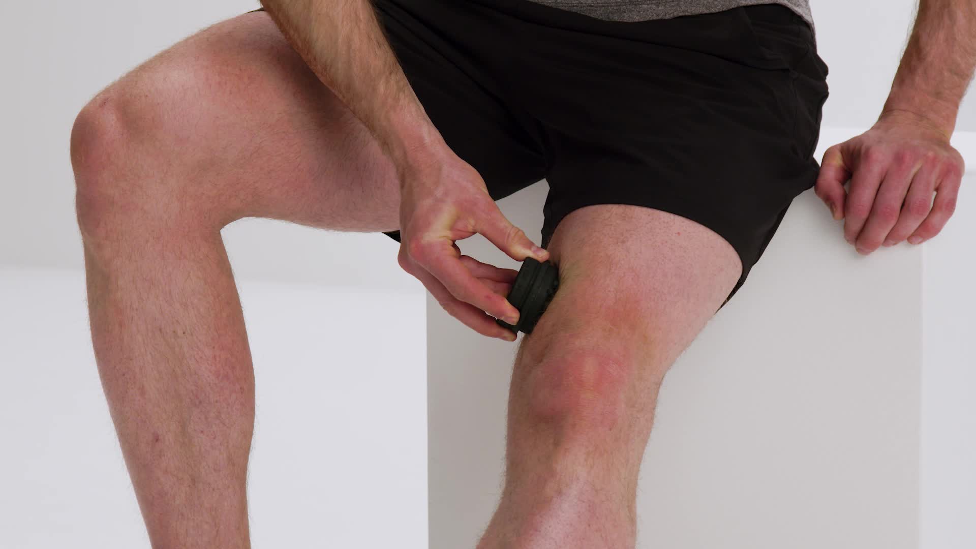 Plaats de TWISTER in een zittende positie met je hand op de scheenbeenspieren. Draai de Twister in beide richtingen. Varieer de druk en de positie.