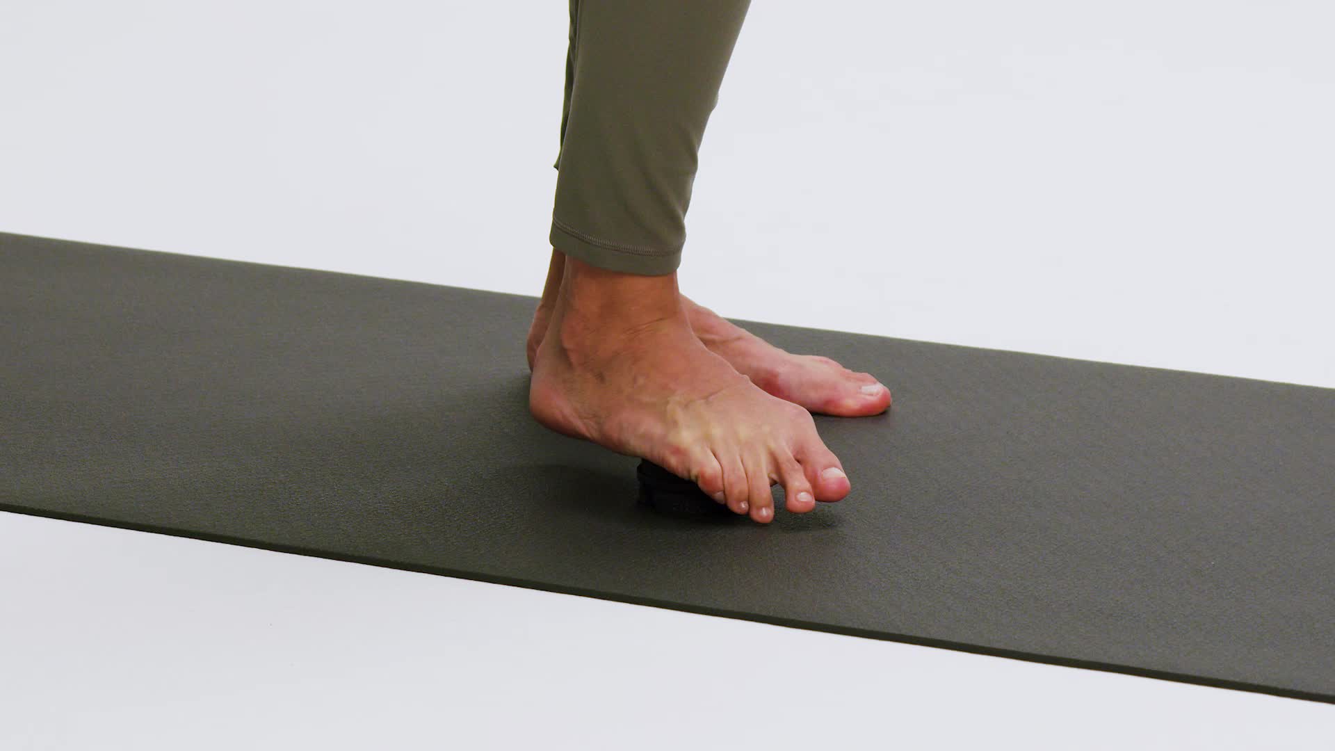 Terwijl je staat, plaats je je voet op de TWISTER. Draai je voet. Varieer de positie en de druk.