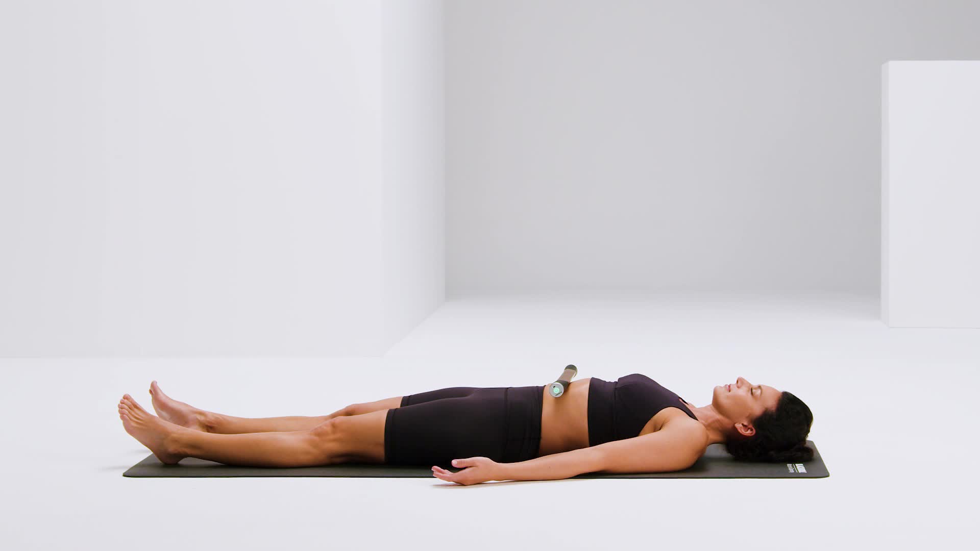 Lig op je rug. Plaats de RELEAZER direct onder je ribben op je buik. Activeer de tweede trilstand. Adem in met de korter aanhoudende trilling. Adem uit bij de langer aanhoudende trilling. Herhaal het proces.