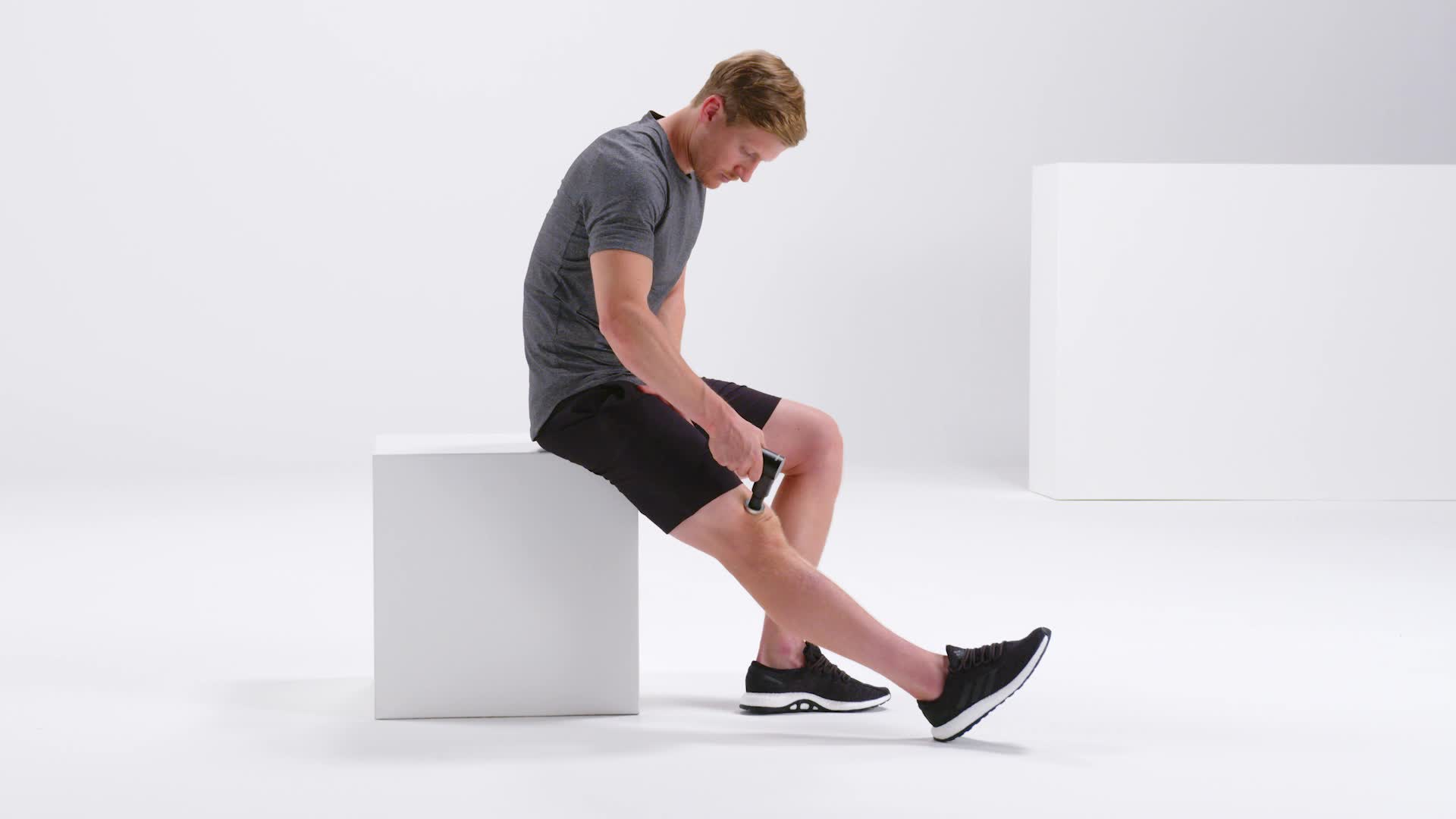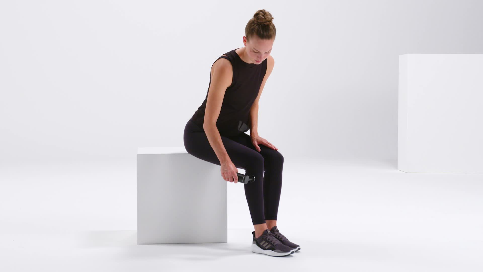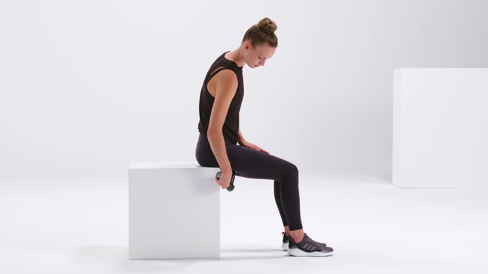 Met het massagepistool kun je gemakkelijk myofasciale zelfmassage-oefeningen in jouw dagelijks leven opnemen. Afhankelijk van de intensiteit van de vibratie die je kiest, kun je de aangename vibratie gebruiken om spieren en fascia te regenereren of om ze te activeren, bijvoorbeeld voor een sportsessie. Hieronder zie je welke oefeningen je met het massagepistool kan doen.