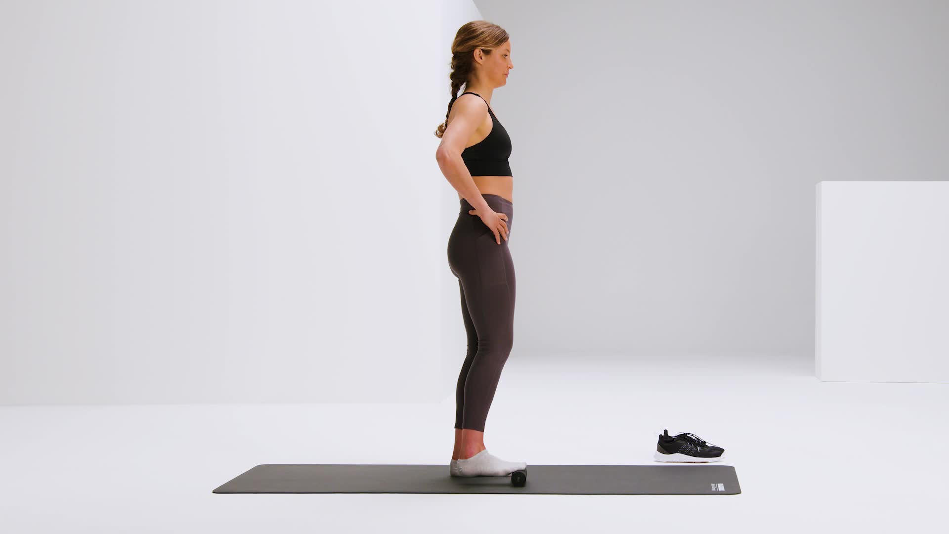 Sta rechtop. Plaats de BLACKROLL® MINI of MINI FLOW onder de zool van jouw voet. Rol de voet heen en weer van hiel naar teen.