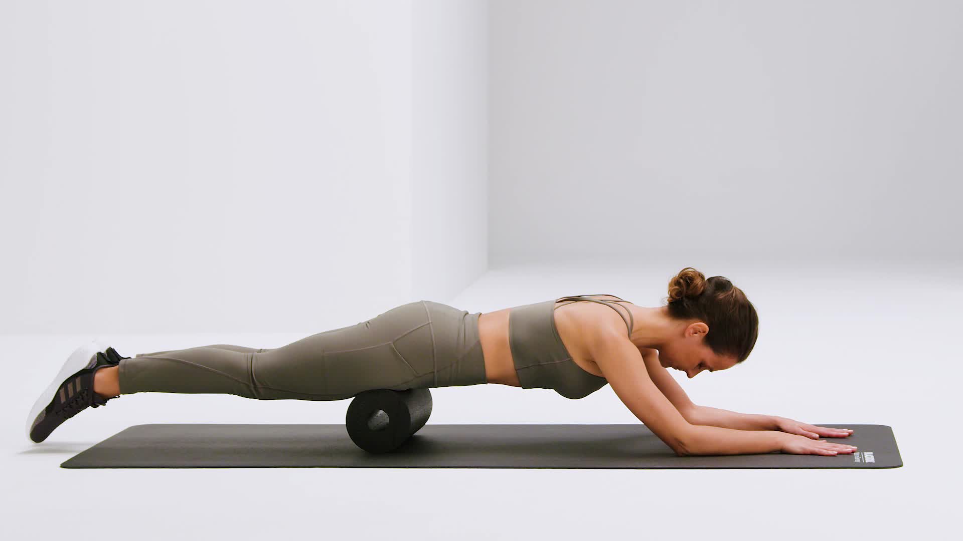 Begin in onderarmsteun. Plaats beide benen net boven de knieën op de BLACKROLL®.